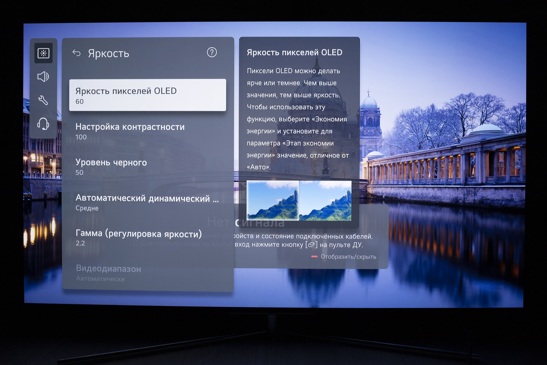Видимого мерцания и неприятных для глаз ощущений в большинстве случаев не наблюдается, за исключением разве что просмотра контента при включенной для повышения чёткости объектов в движении функции OLED Motion, когда частота модуляции снижается до 60 Гц и даже недолгая работа с экраном словно давит на глаза. Коэффициент пульсации в таком режиме становится очень высоким, по данным прибора Radex Lupin.