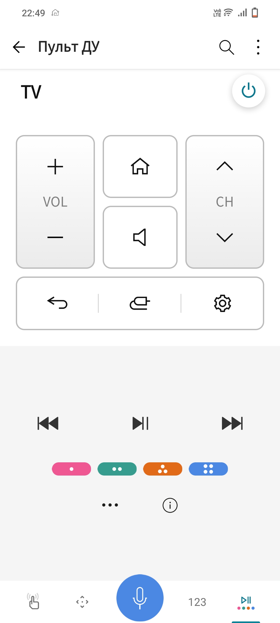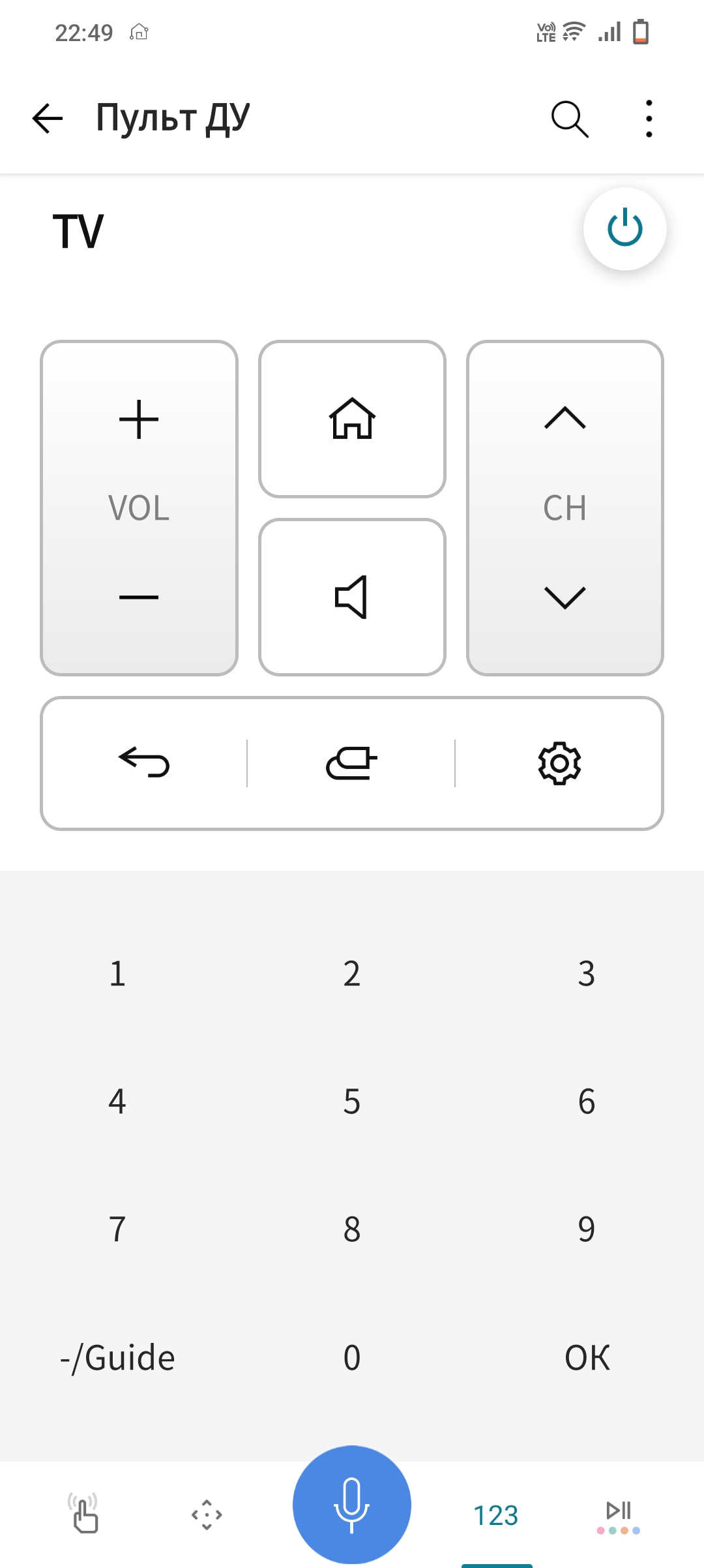 Кнопка питания обладает приятной красной подсветкой, загорающейся при нажатии любого элемента управления на пульте. При нажатии кнопки питания используется ИК-передатчик, а пульт обязательно нужно направлять на серебристую вставку телевизора — в остальных случаях задействован Bluetooth.