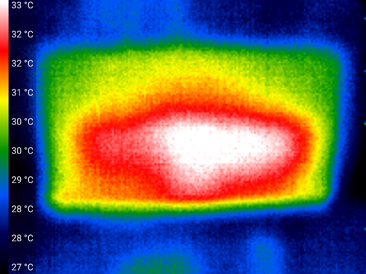 Наибольший, но при этом умеренный нагрев приходится на центральную часть устройства, ведь сзади примерно в этом месте находится блок с основной "начинкой" устройства.