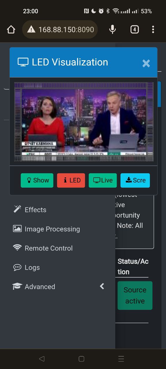 По итогу подсветка есть, но с дикой задержкой в несколько секунд. Причем похоже задержка от HyperHDR к контроллеру, т.к. изображение на телефоне в браузере через гуйню HyperHDR я вижу почти без лага.