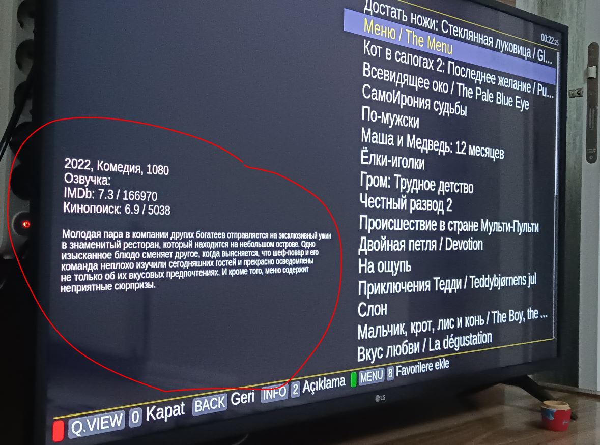 [INFO] - Вызов информации о текущей передаче (по кругу нажатия: показ названия - показ описания - убрать)
