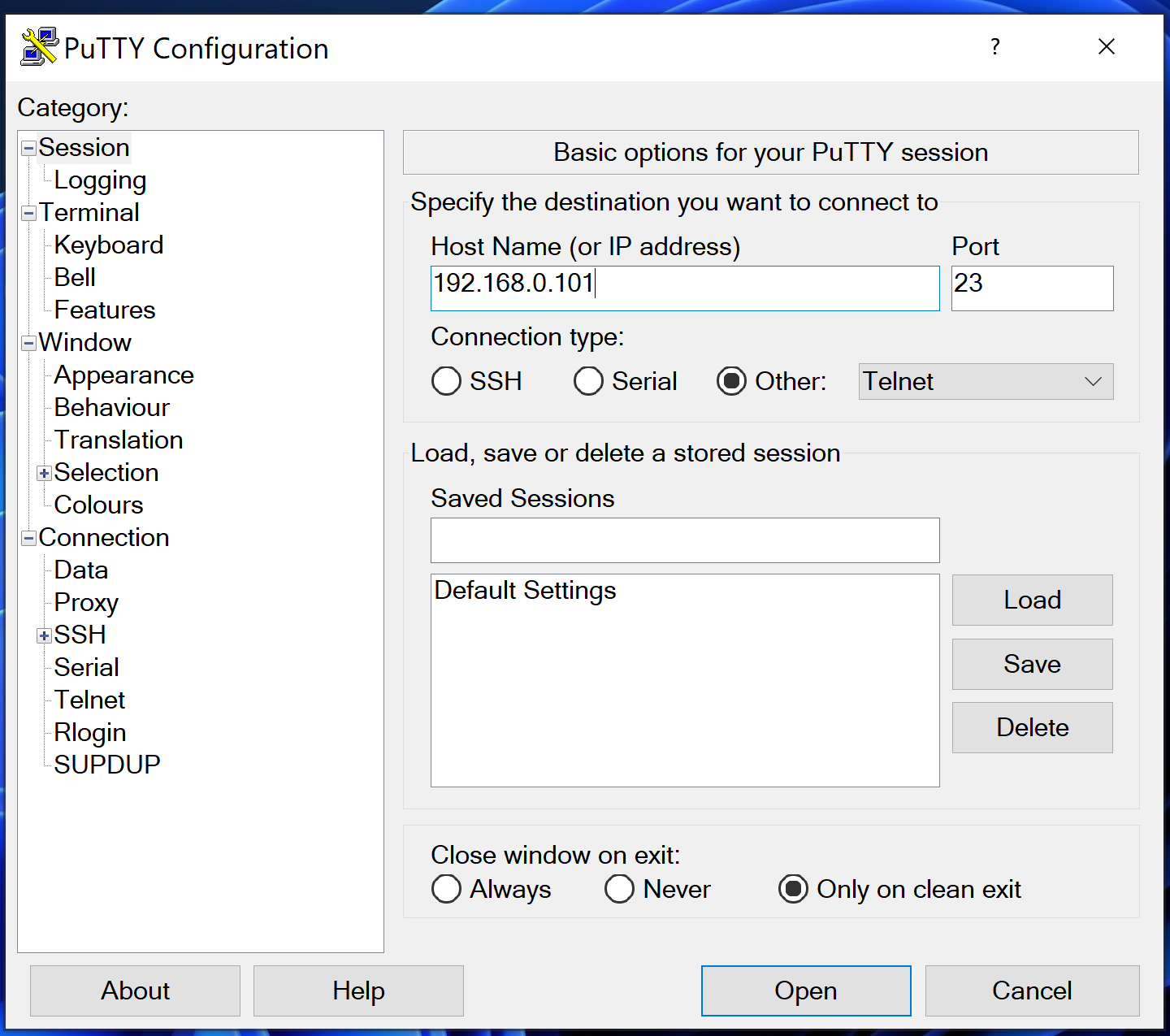 Фото настроек Putty покажите.