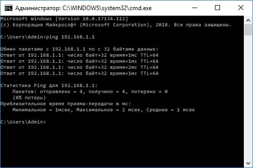 На следующем примере пингуется маршрутизатор в локальной сети, используя его IP-адрес. И получается от него нормальный ответ.