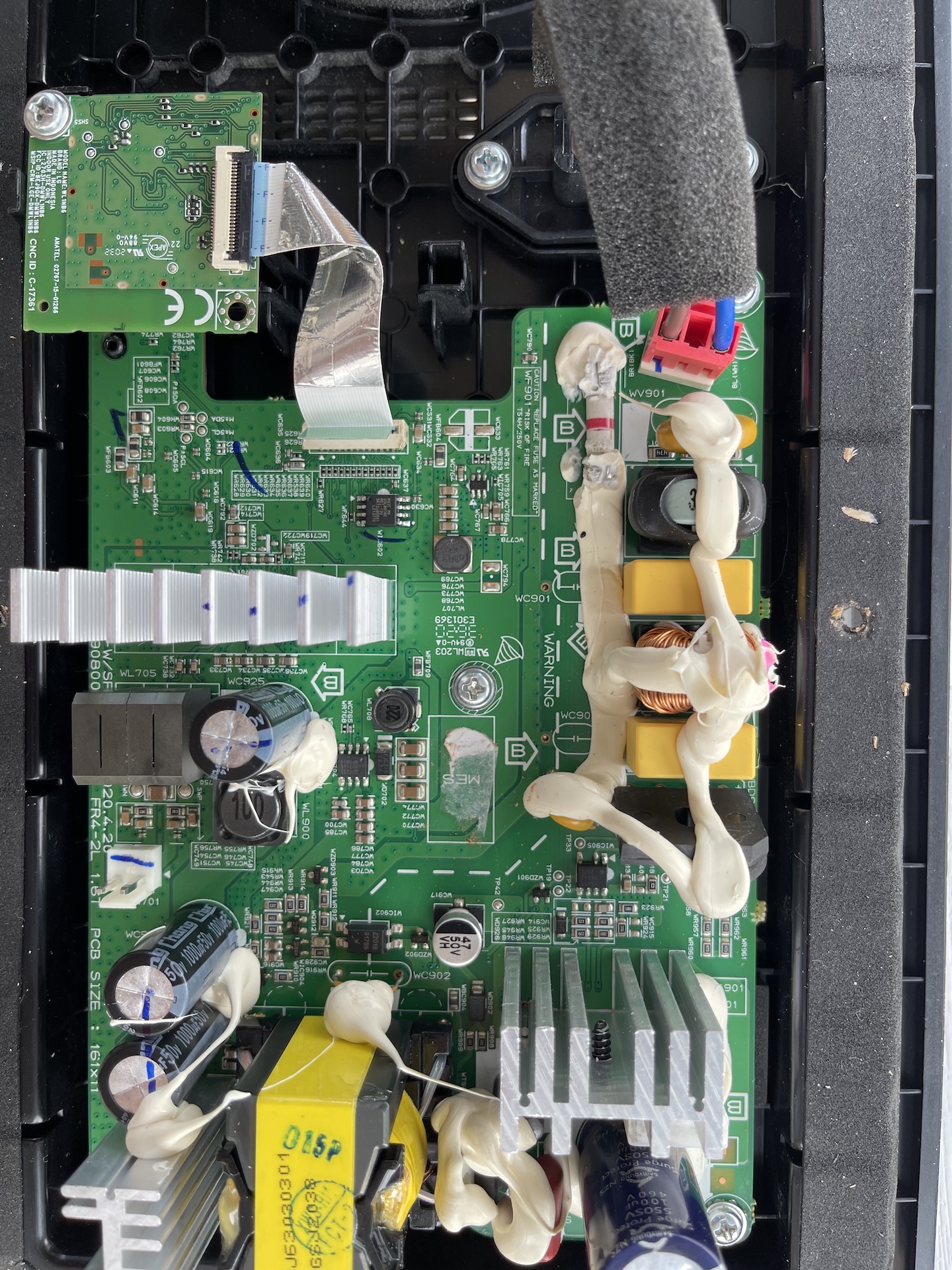 Для остальных пользователей с аналогичной проблемой делюсь своим опытом ремонта сабвуфера.Собираем сабвуфер обратно, подключаем в сеть. На задней панели медленно будет мигать красный индикатор. Нажимаем и удерживаем кнопку PAIRING, красный индикатор замигает часто. Включаем саундбар и ждем сопряжения, загорится зеленый индикатор на задней панели сабвуфера.