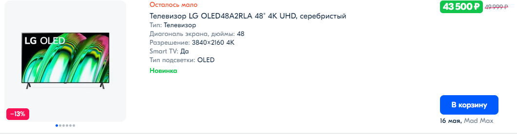 Kudv1t писал(а):На Яндекс маркете хорошая цена на тв LG OLED55C24LA.ARUB - 127182р.