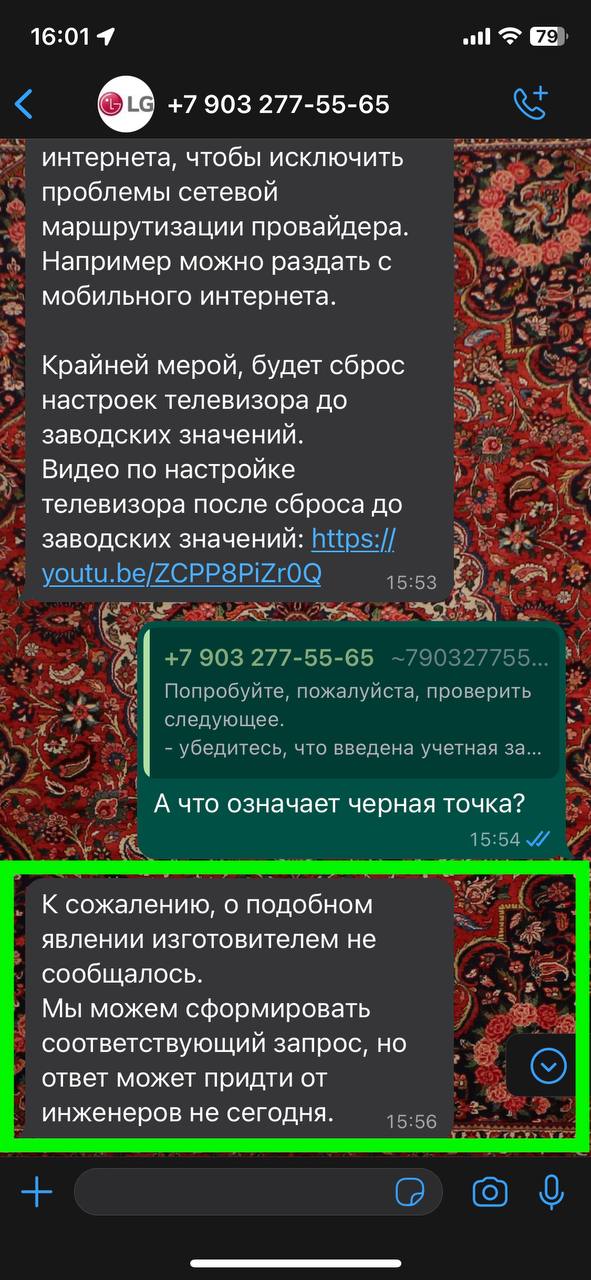 Что за прикол такой) (В поддержку LG писал, стандартные ответы - проверить учётку, время, местоположение и если не помогло - сброс до заводских, про чёрную точку они не в курсах :D)