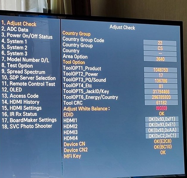 Прошу помочь если это возможно. В instart строчка white balance ng (0) стала красной (нажал reset). Хотелось бы вернуть значение ОК. Телевизор китаец Konka A55 (вроде как аналог LG B1/B2, не буду утверждать). На 4pda форумчанин скинул свои настройки ББ. Я выставил так же как у него, но строчка white balance ng (0) все равно красная.