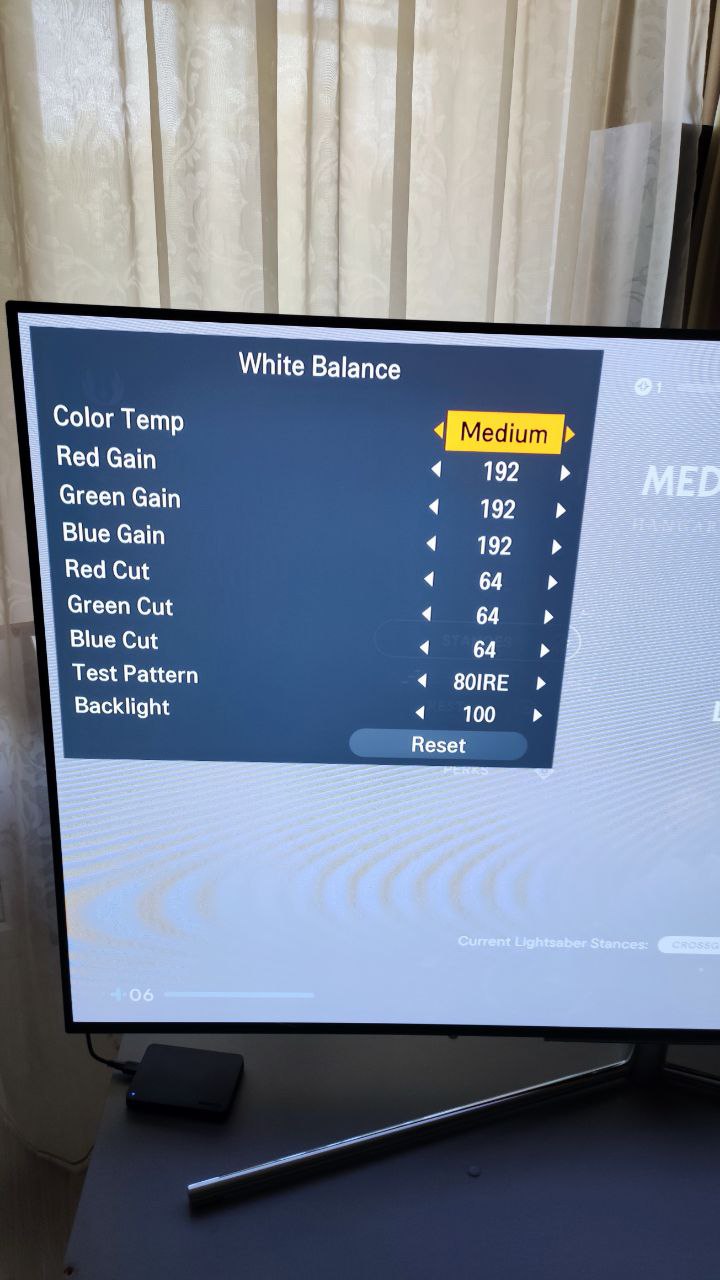 - В SDR качестве всё прекрасно видно, также видно в детали в тенях, показывает очень хорошо. Кроме того, есть тонкие настройки цветов, и более того, настройки баланса белого. На любой глаз можно круто настроить.