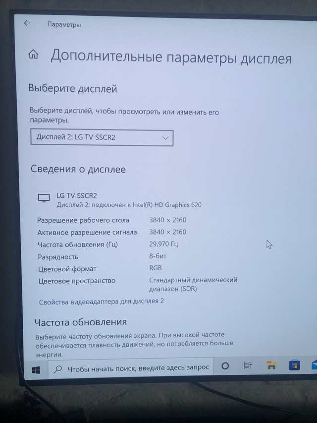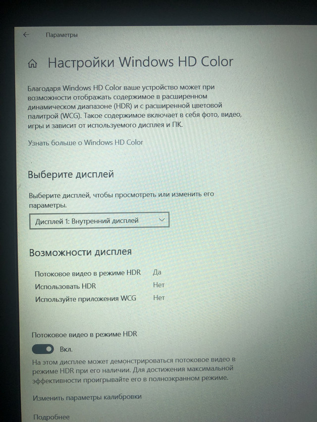 Далее подключил тв к ноуту через hdmi для вывода на тв, но ноут почему то считает что на этом тв нет HDR. Находит его как sdr 8bit
