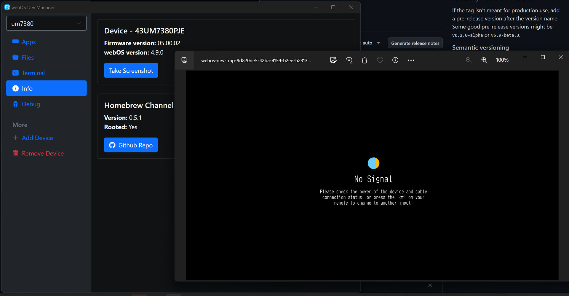 Кстати, за последние месяцы вышли основной (v1.10) и минорный (v1.10.1) релизы webOS Dev Manager. Из основных нововведений можно отметить следующие: