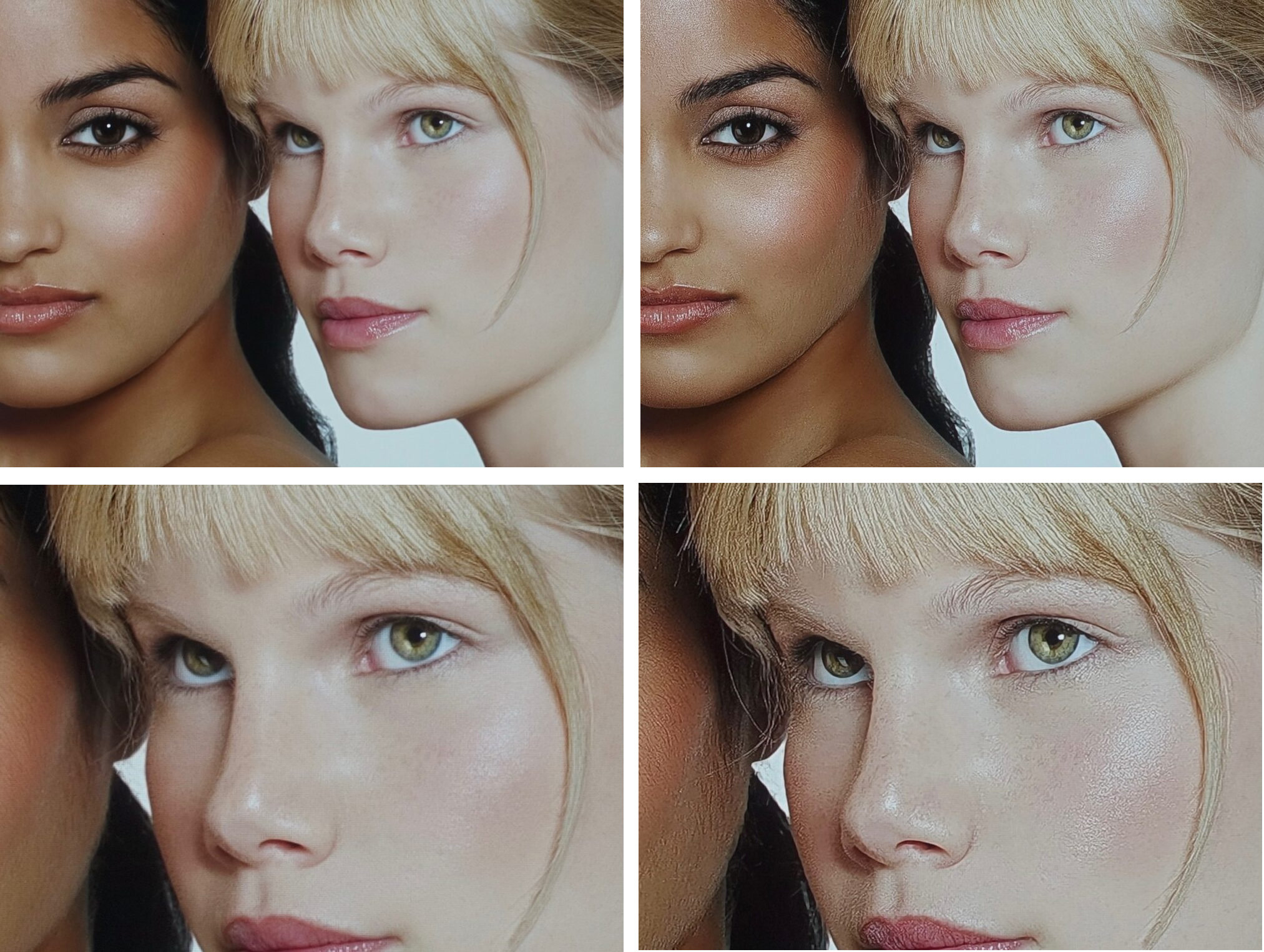 Чтобы наглядно увидеть разницу между подходами LG к апскейлингу, достаточно выкрутить регулятор резкости на максимум и посмотреть, например, крупный план лица. В наших тестах при использовании Full HD-изображения с повышенной резкостью стали особенно заметны недостатки сглаживания контуров и усиления контраста пикселей.
