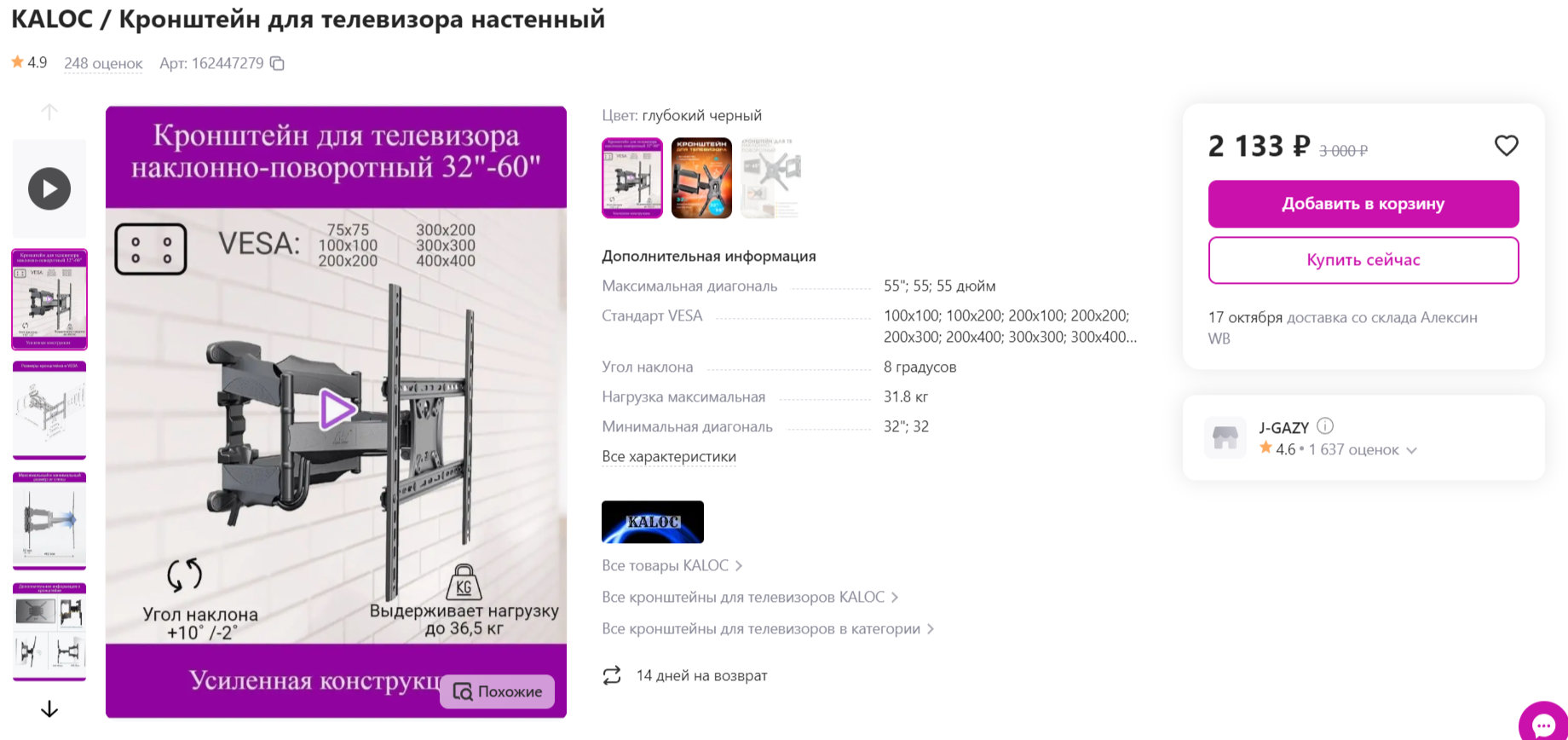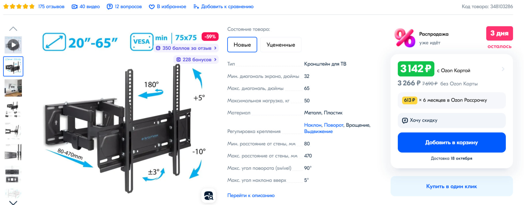 В силу появления кота и его внезапному интересу к моему lg oled55cxrla, появилась потребность к кронштейну настенному.