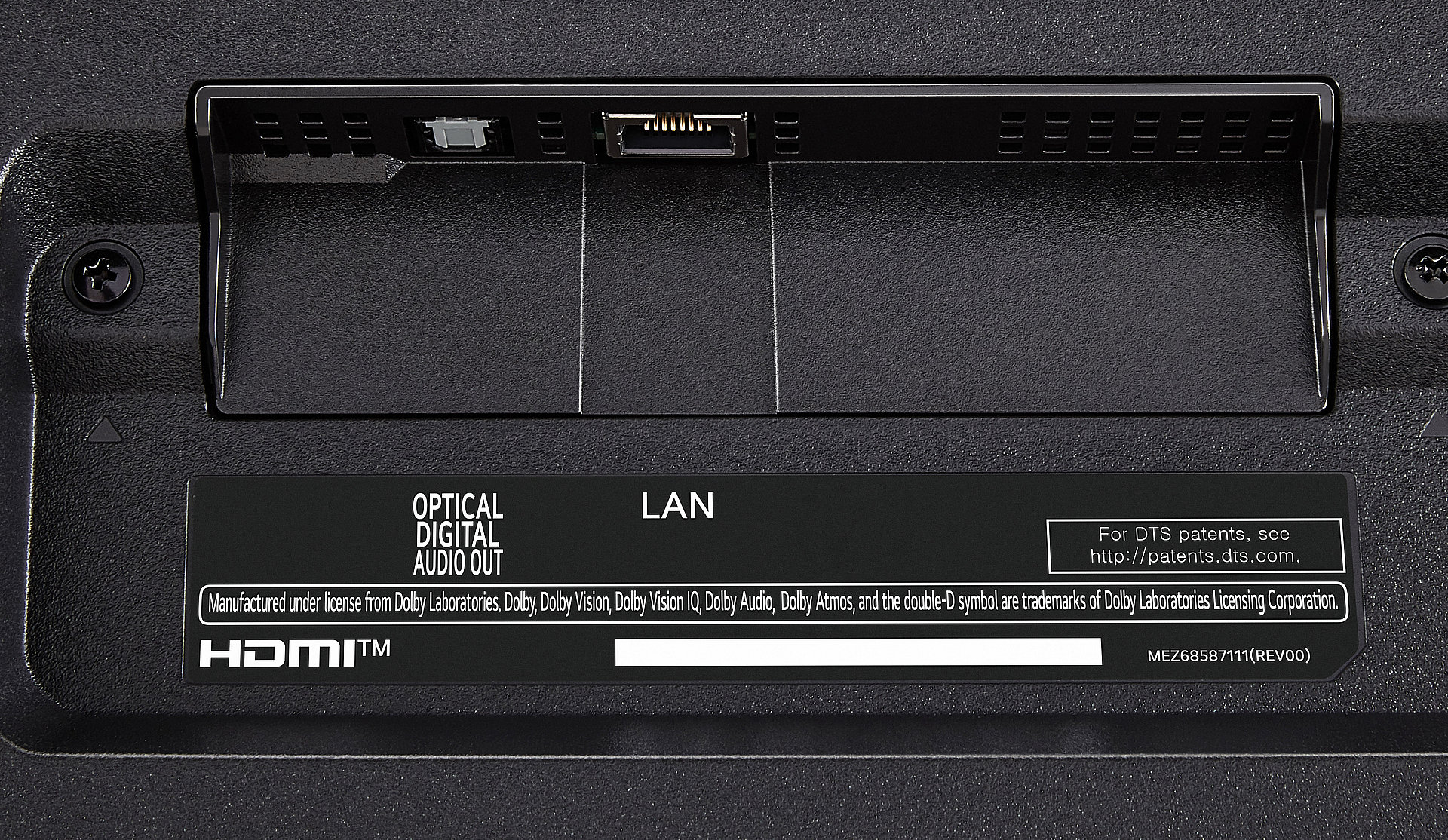 Нижняя панель телевизора LG QNED81 оснащена следующими интерфейсами: один порт USB (версии 2.0). Что касается аудио, то на этой же панели расположен оптический аудиовыход, выход 3,5" на наушники/акустику отсутствует.