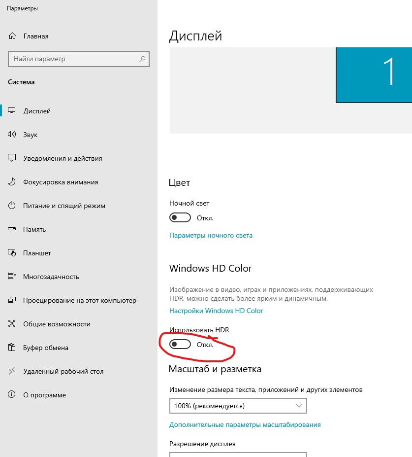 В «Параметры экрана» включаем «Использовать HDR»