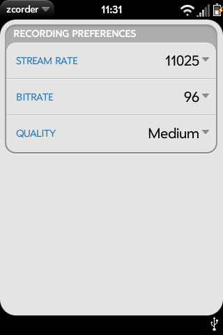 Вот, нашел бесплатный диктофон для Palm Pre от отечественного разработчика ashrig. Поддерживаются запись, прослушка, удаление файлов.
