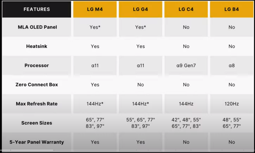 LG 2024 OLED TV Lineup Explained: 83" MLA M4, G4, C4, B4