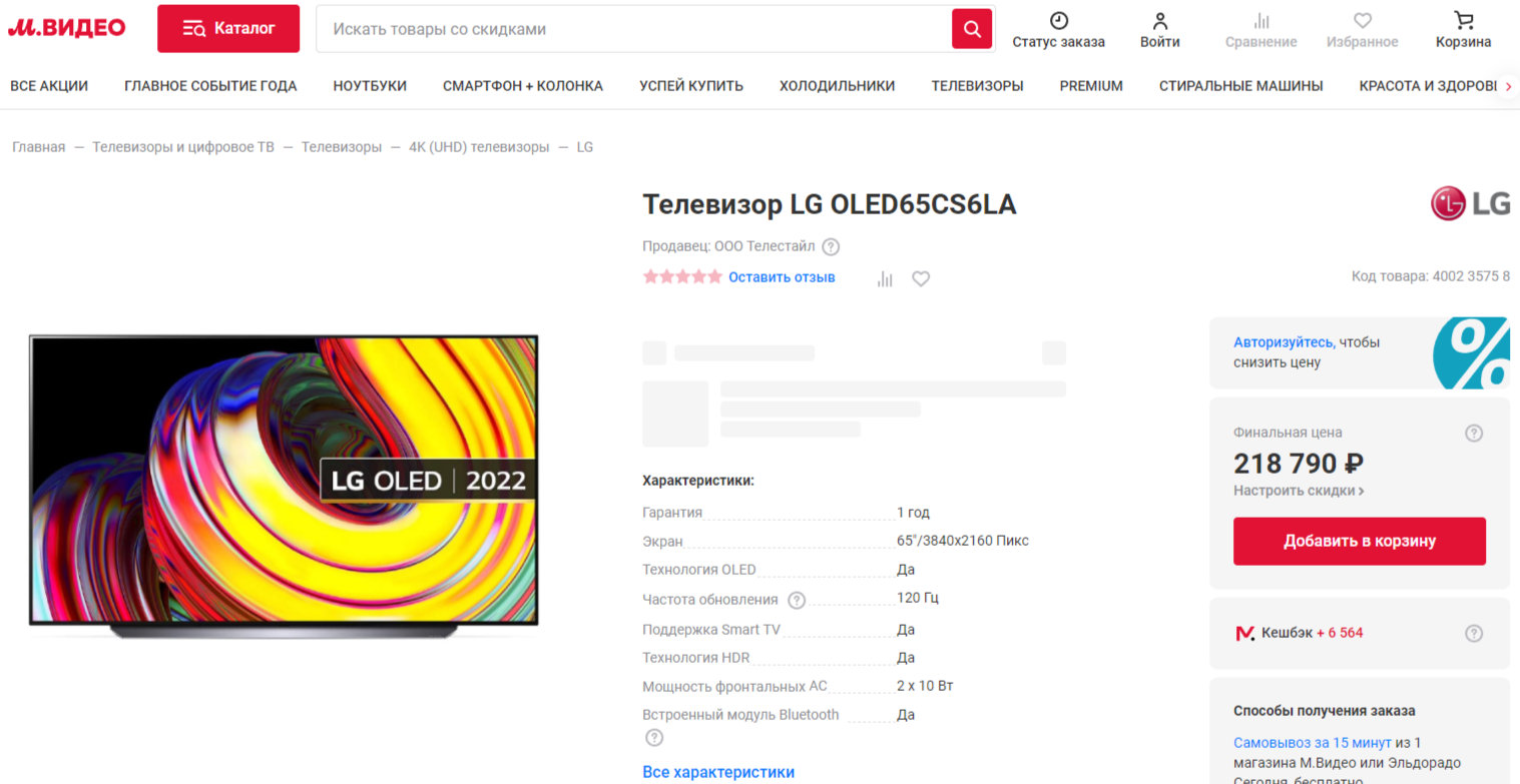 LG OLED CS TV поступил в продажу в Европе, США, Азии и некоторых странах «Ближнего Востока»,
