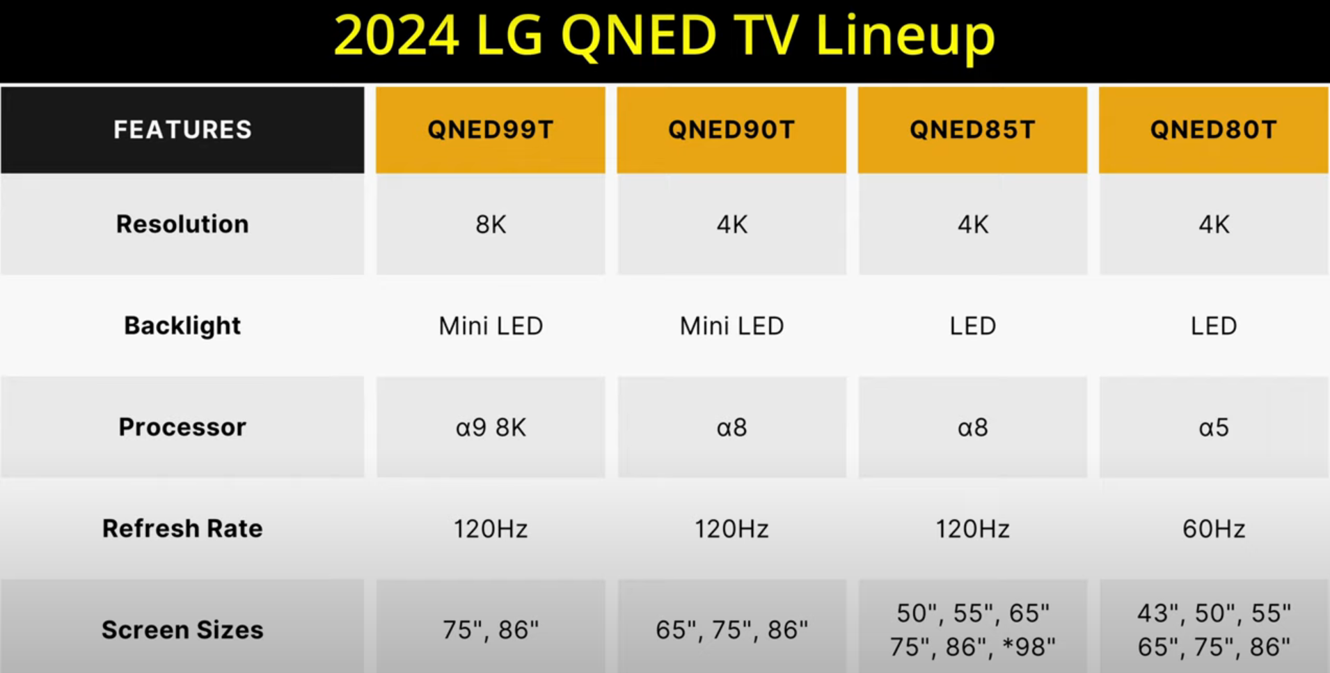 LG QNED80T: 4K LCD, LED, a5 gen 7, 60Hz panel, Dolby Vision, 43",50",55",65",75",86".