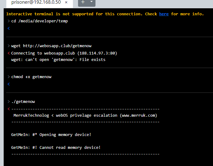 После этой команды терминал выдаёт: GetMeIn: #! Cannot read memory device!