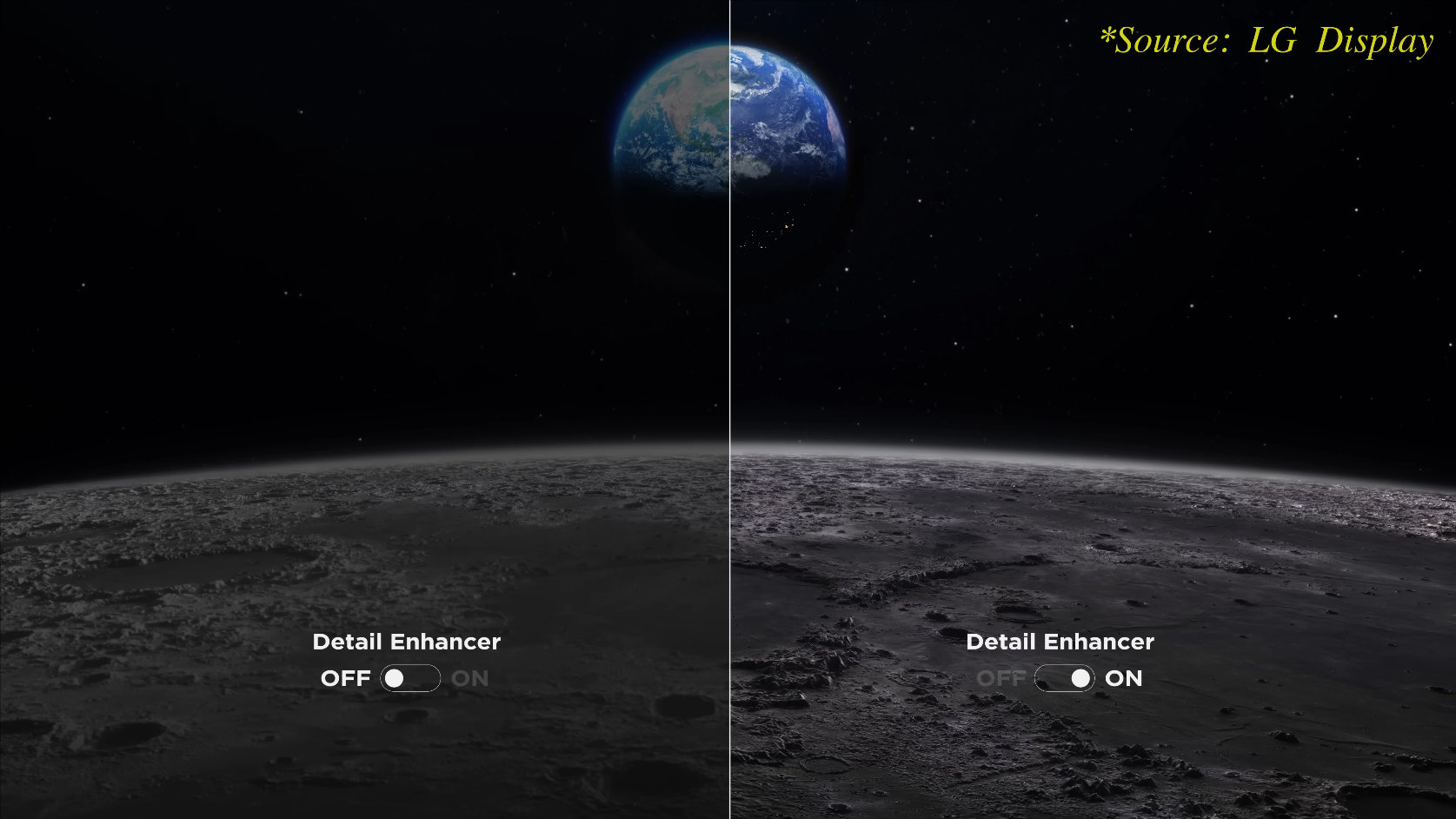 Дисплеям обычно сложно точно отображать более темные изображения (низкие градации) в отличие от более ярких изображений (высокие градации). Запатентованный LG Display «Detail Enhancer» — это полнофункциональный алгоритм улучшения детализации яркости, который обеспечивает стабильную и точную цветопередачу независимо от уровня яркости.