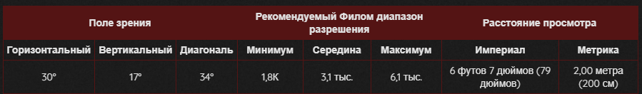 выходящий у меня для 48" на 2 метрах по расчету горизонтальный угол обзорасовсем не критическийПримечания к диапазону поля зрения. Диапазон для дома и театра отражает как минимальное, так и максимальное рекомендуемое расстояние просмотра для современных дисплеев. Идеальное горизонтальное поле зрения составляет 40–60°, но вы можете найти более близкий или более дальний угол обзора.