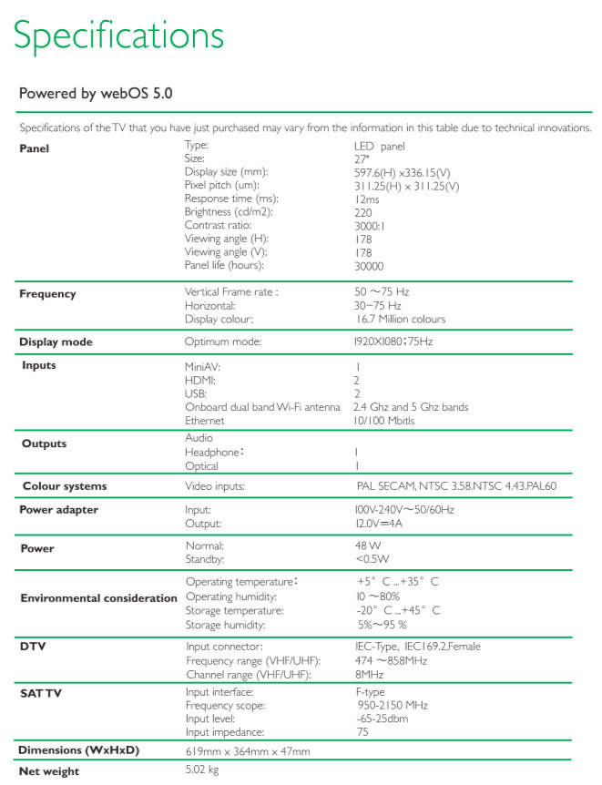 На последней странице в спецификациях есть упоминание об используемой операционной системе - webOS 5.0 8-).