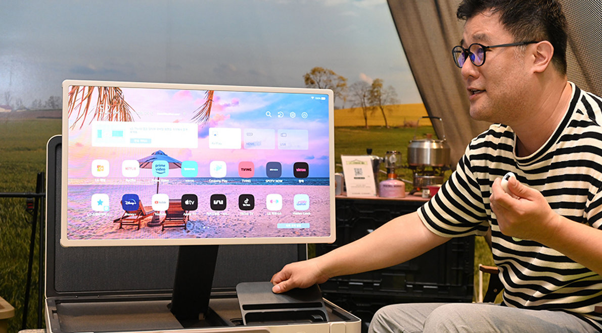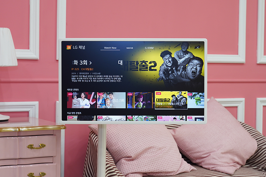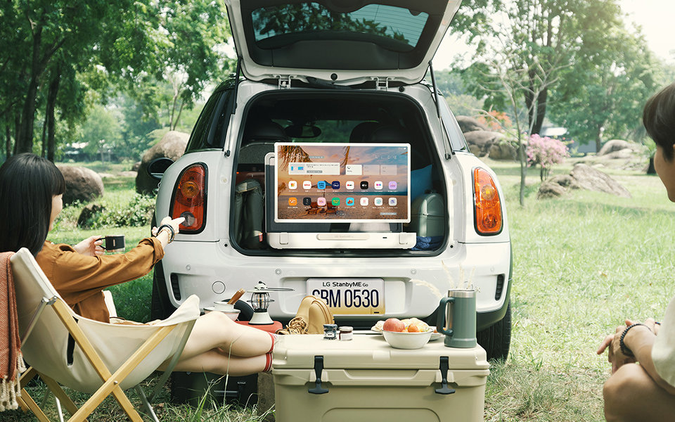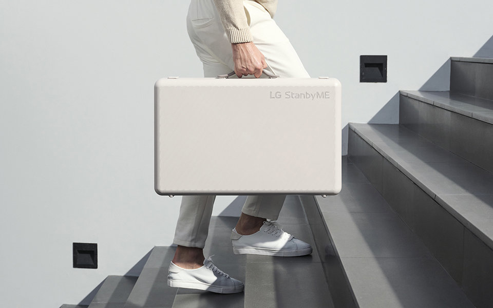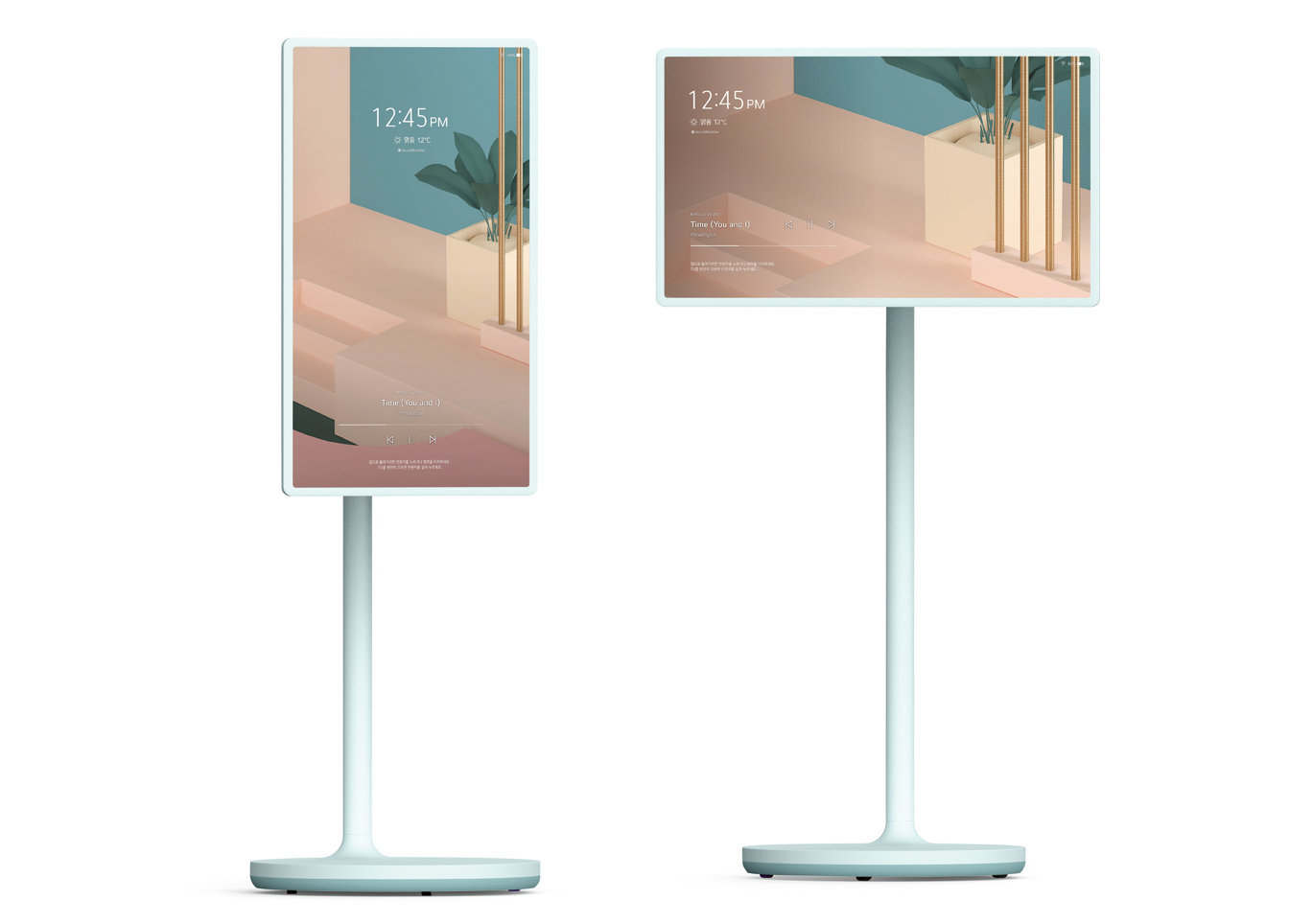 LG 27ART10 - телевизор с сенсорным экраном, размещенный на подвижной подставке с колёсиками, с возможностью регулировки углов поворота и наклона экрана. Точное обозначение модели для корейского рынка 27ART10AKPL, название для международных рынков - StandbyMe.