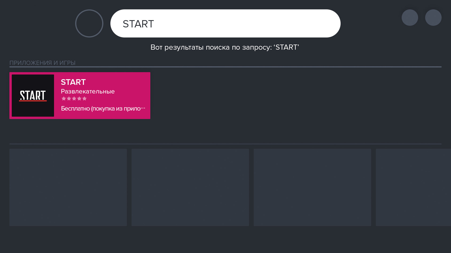 Откройте строку поиска и затем введите в поисковой строке слово START. По результатам поиска перейдите в раздел для скачивания приложения нажав на иконку START.