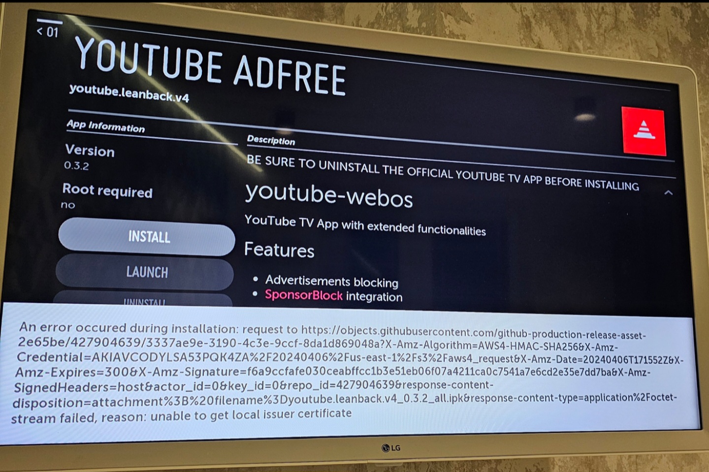 JackSparrow писал(а):На некоторых моделях телевизоров при попытке установить приложения выдается ошибка SSL-сертификатов "Unable to get local issuer certificate".