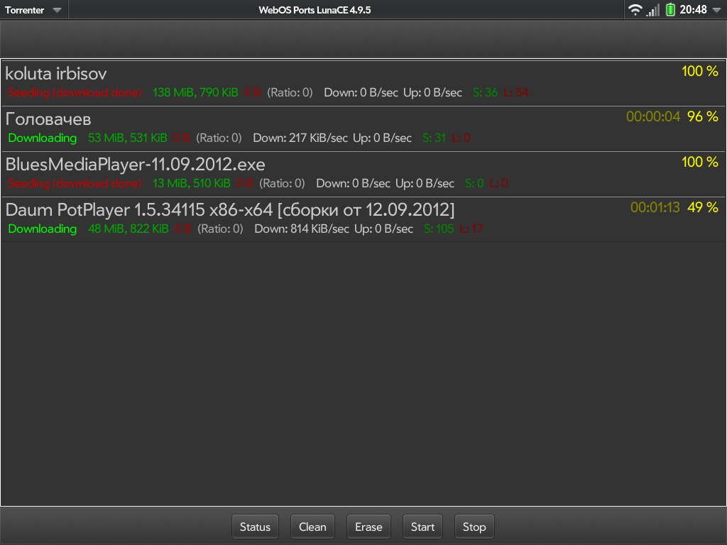 Описание: Бесплатный торрент-клиент для webOS. Чтобы скачать файл с торрент-трекера, необходимо сохранить torrent-файл на встроенный накопитель планшета и открыть его помощью любого файлового-менеджера, после чего Torrenter начнет его загрузку.