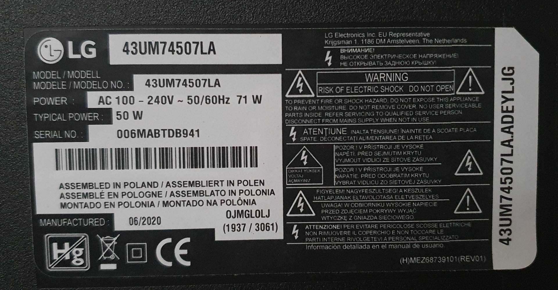 Помимо маркировки модели, необходимо также сверить серийный номер с настройками. Если телевизор все еще находится на гарантии, бесплатно ремонтируются только телевизоры с правильным серийным номером.