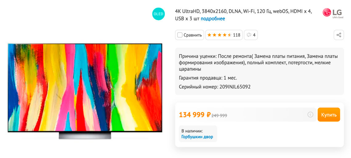 Найти раздел подержанных товаров на сайте несложно: ищите в каталоге "уцененные" или "уцененные товары" (у DNS и Citilink точно есть такие разделы). Износ телевизора варьируются от продавца к продавцу, но есть две основные категории: