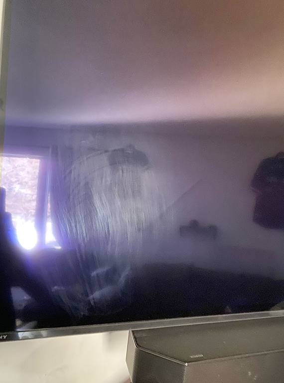 Сколы указывают на то, что телевизор роняли во время транспортировки или использования, а царапины могут быть вызваны тем, что владелец бросил в него пульт дистанционного управления.