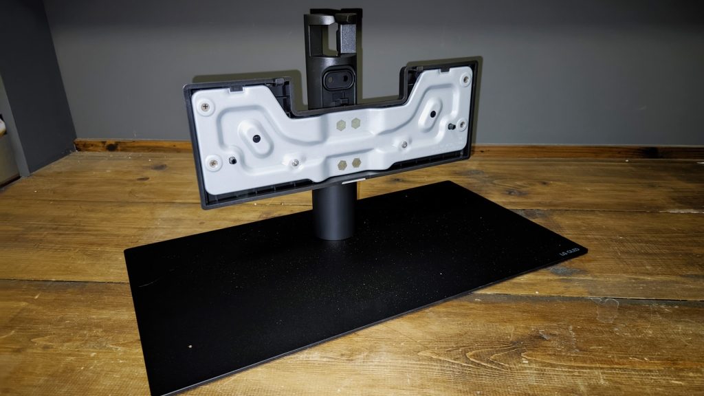 Новое основание также стало более элегантным и прочным и может монтироваться двумя способами, при этом в высоком положении достаточно места для звуковой панели под телевизором.