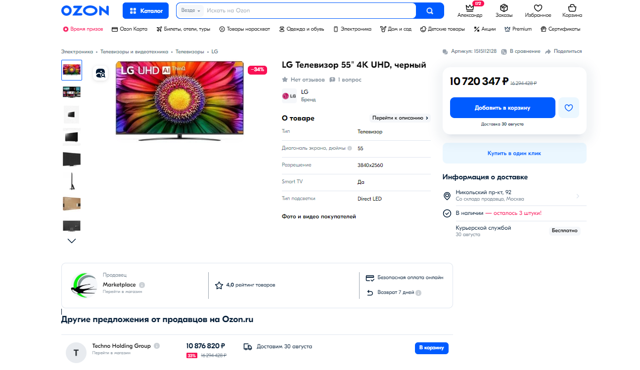 Цена, конечно, смущает, но с аликом был опыт покупок по явно ошибочной низкой цене, но приходило. Тем более я собирался оформить в рассрочку, как обычно. А так они утверждают