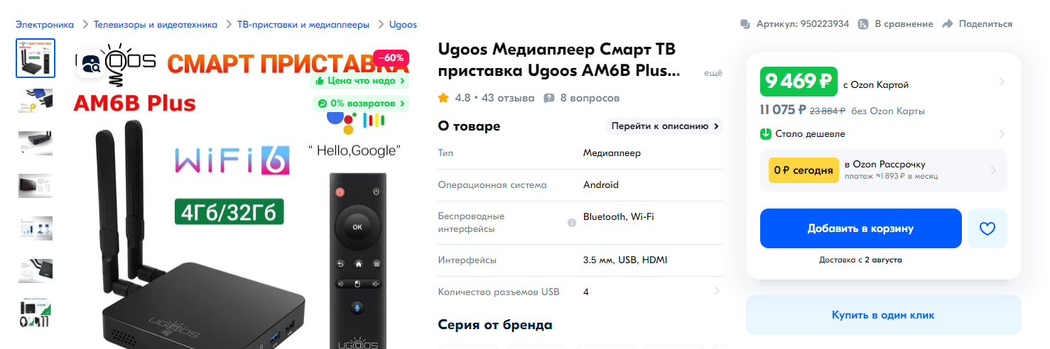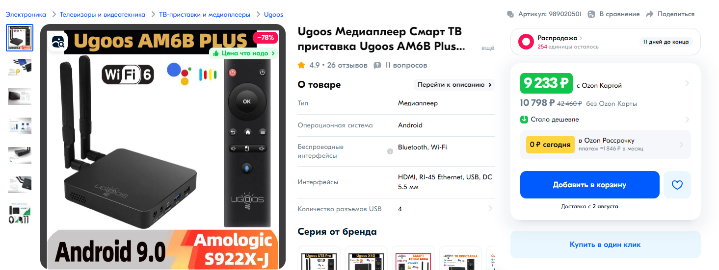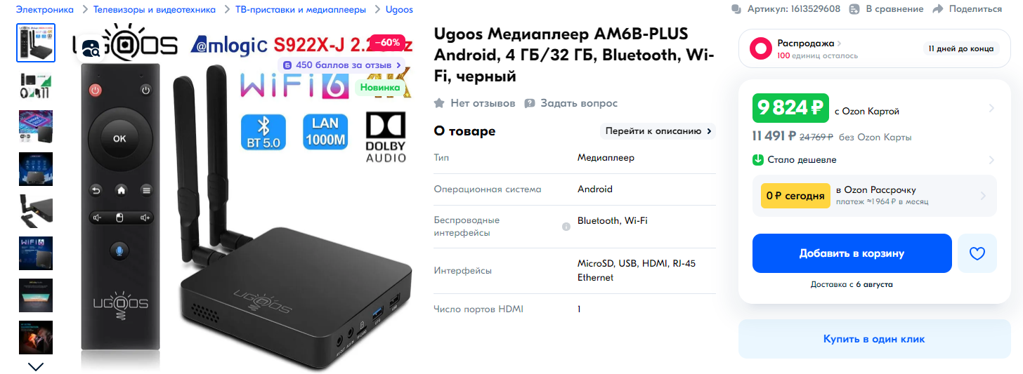 Тогда на фоне положительных тенденций в/отзывов о использовании подкину с Озона такое (для желающих еще сэкономить) Ugoos Медиаплеер AM6B-PLUS