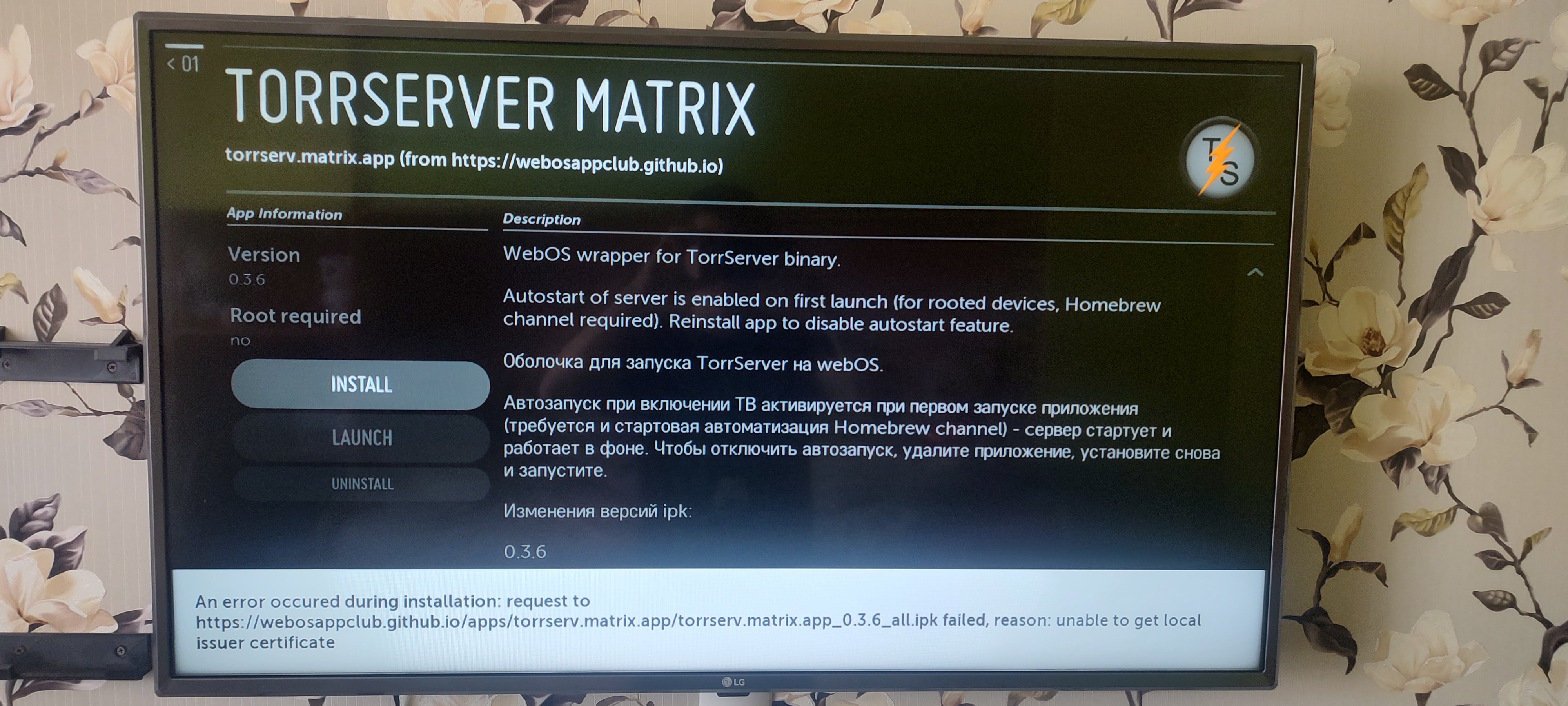 п. п.с. напомню, на старых моделях телевизоров при попытке установить приложения ранее выдавалась ошибка SSL сертификатов "Unable to get local issuer certificate".