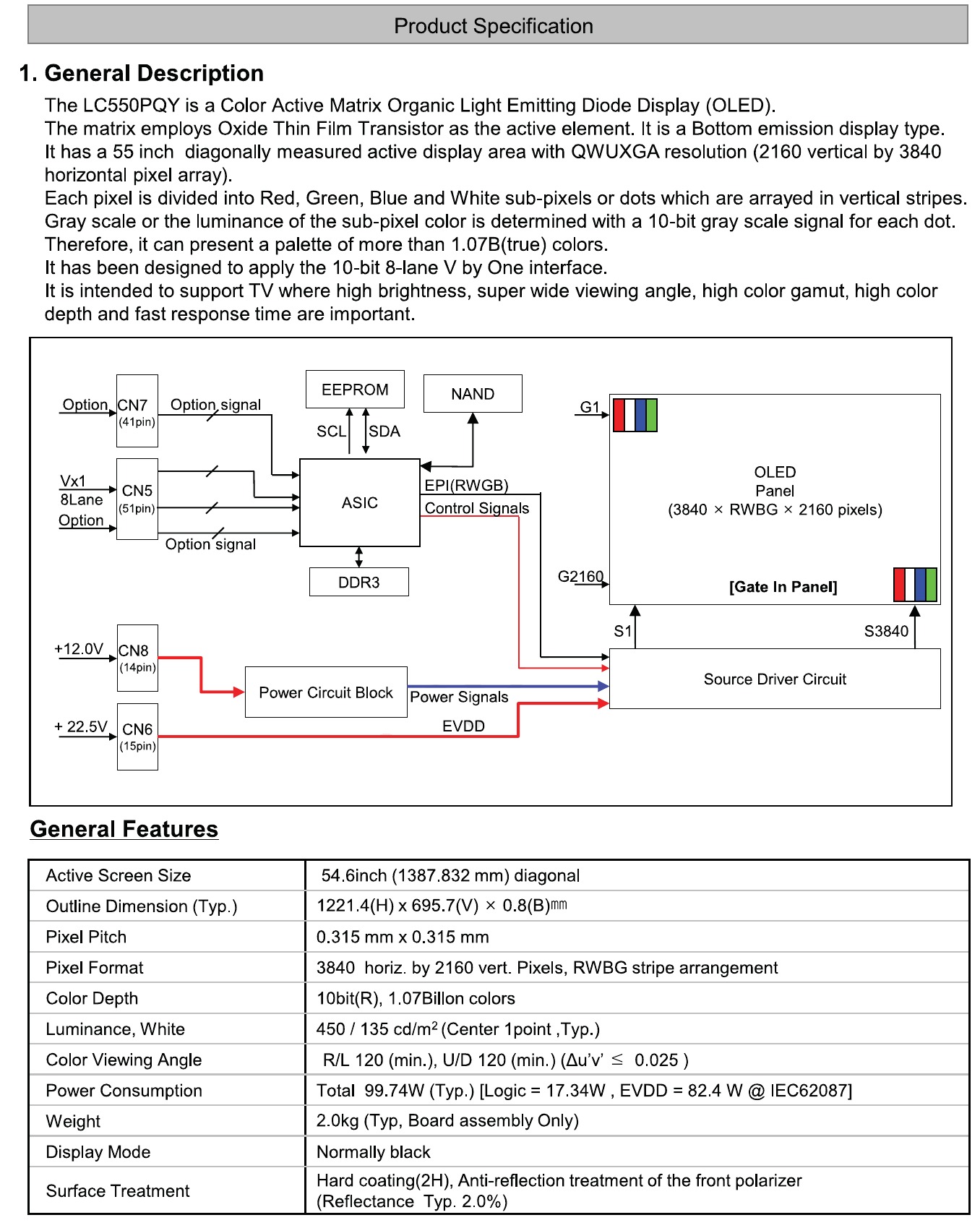Интересная информация из спецификации на OLED-панель LG LC550PQY: