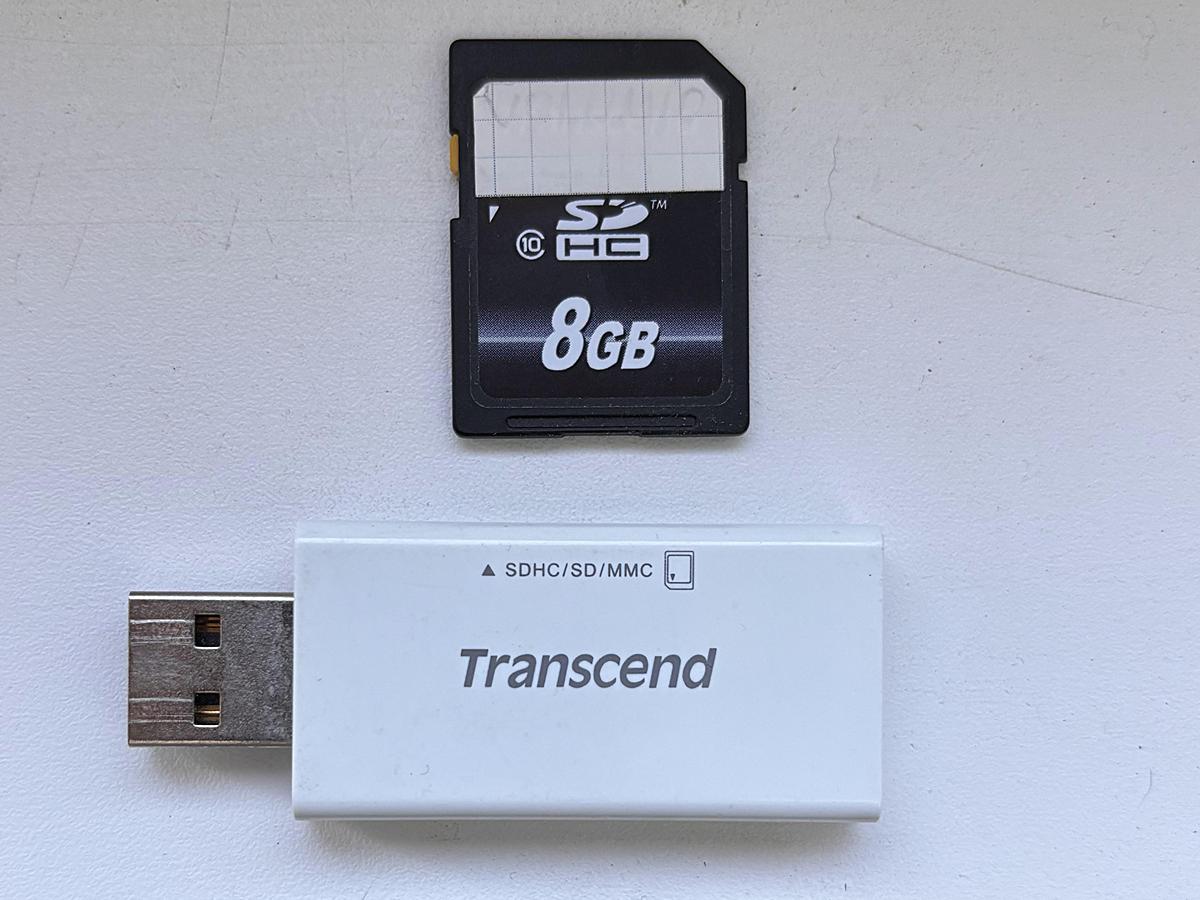 В качестве флэшки использовал простой картридер + SDHC карта на 8ГБ.