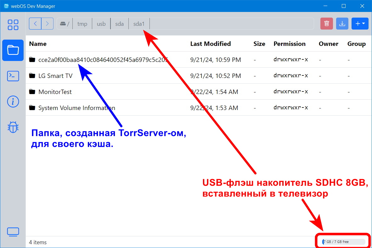 Использовать внутреннюю флэш-память телевизора для размещения там кэша TorrServer-a НЕ РЕКОМЕНДУЕТСЯ, т.к. за год/два постоянной эксплуатации она может выйти из строя и телевизор сломается.