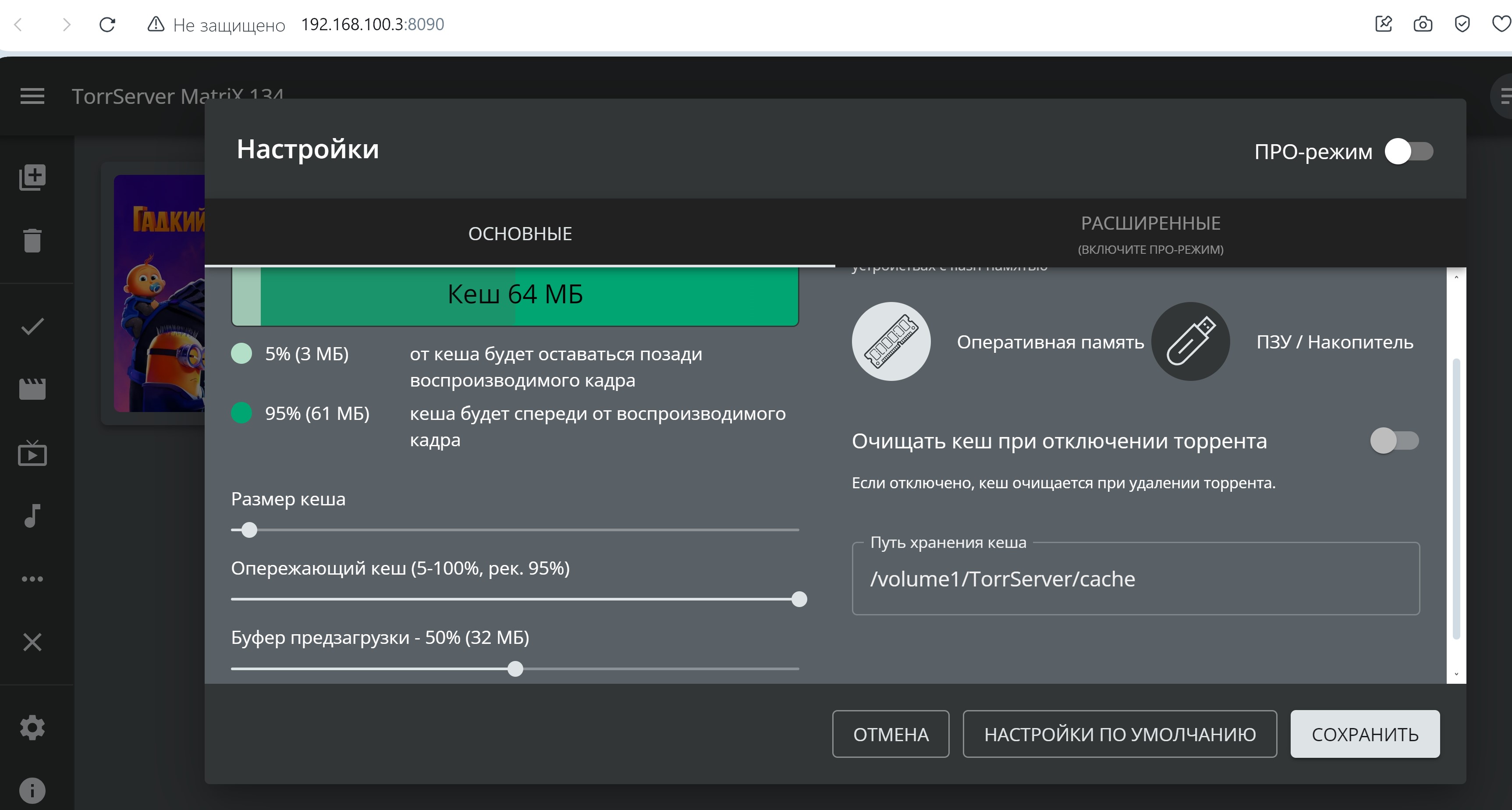 В TorrServer MatriX уменьшил кэш с 64МБ до 32МБ "на всякий случай", но, как оказалось, это не спасло...