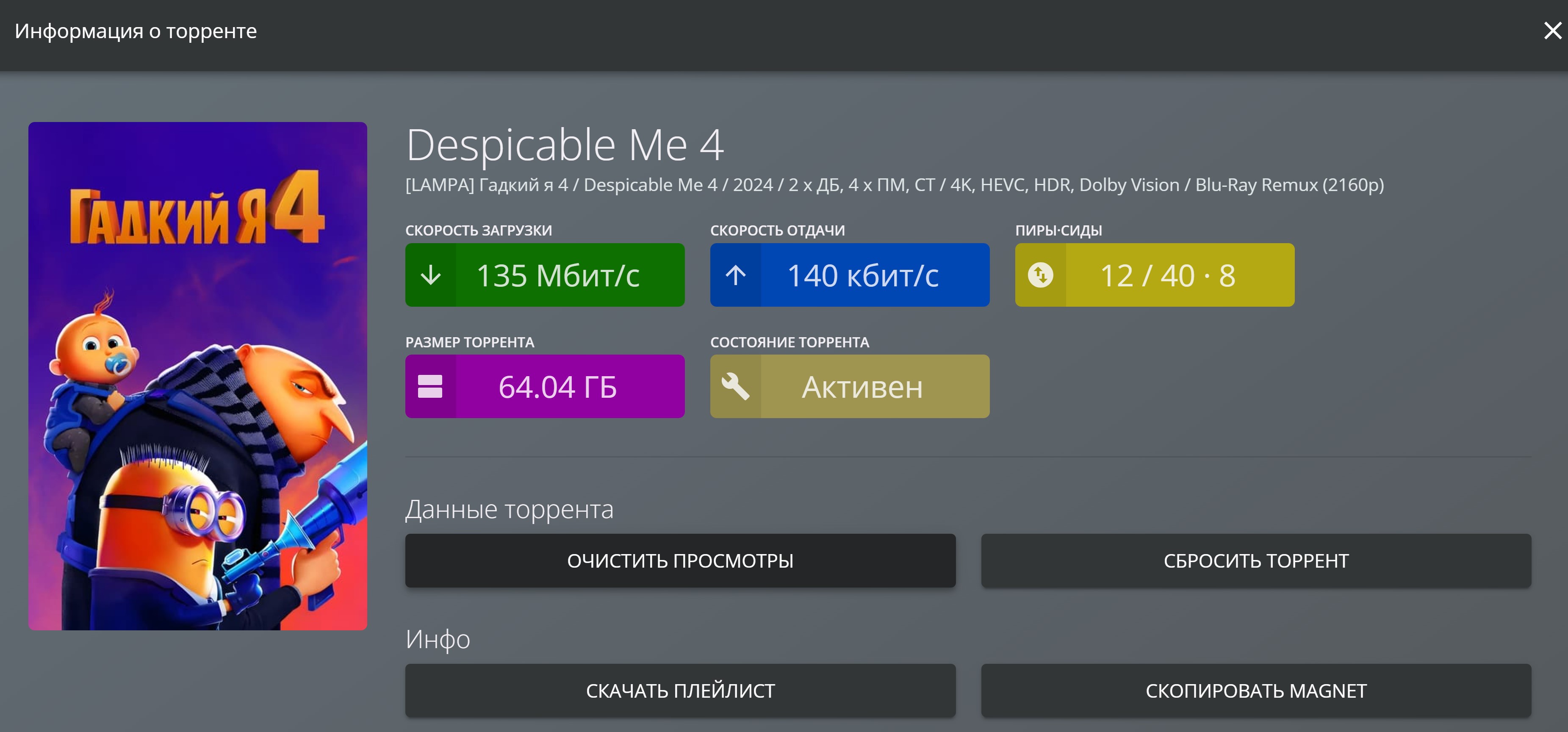 Работой Лампы при воспроизведении торрентов теперь полностью удовлетворён.