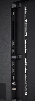 Боковая панель оснащена двумя входами HDMI v2.1 (один из которых совместим с ARC и eARC), двумя входами HDMI v2.0, двумя разъемами USB 2.0, 2 антенными входами (для спутникового и кабельного/эфирного ТВ) и слотом условного доступа CI+.