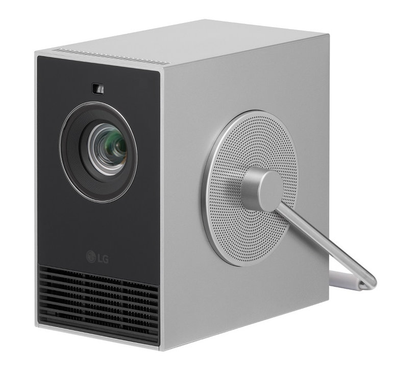 LG CineBeam Qube (HU710PB) - совершенно уникальный продукт. Этот 4K-проектор отличается компактным дизайном и поворотной (на 360 градусов) ручкой, что делает его очень портативным и удобным для использования в различных помещениях. Кроме того, внешнее он смотрится действительно круто 8-).
