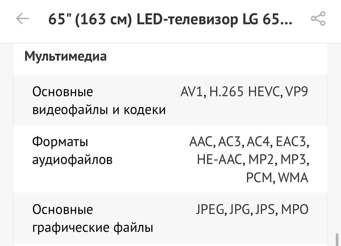 GreenLine07 писал(а):И смотрю по ТТХ на оф сайте LG новая модель сильно порезана в кодеках, так ли это что MP4, MKV, H264 и т.д.QNED91 не читает?