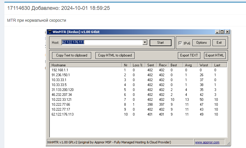 Здравствуйте. Делал неоднократно для своего провайдера недавно. И ему выкладывал результаты.