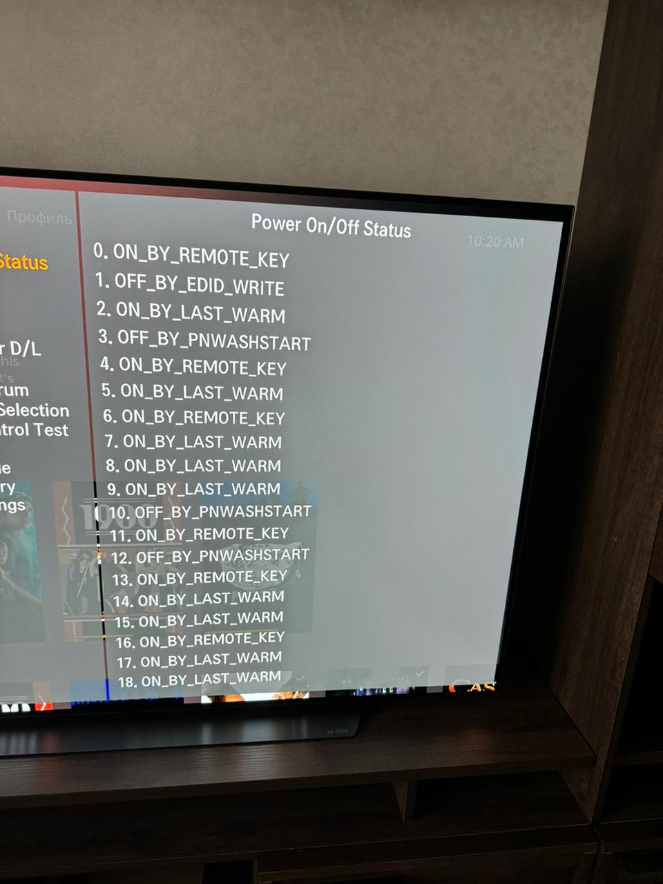По ссылкам (2-м последним из приведенных уважаемым SCS) возникновение подобной ситуации по причине наличия подключения по HDMI приставки с автосогласованием по питанию (HDMI CEC) и ее решение (найденное, кстати, именно с помощью нашего форума narpol @ Функция "Очистка пикселей" ("Восстановление пикселей") на OLED) путем отсоединения приставки, а в вашей же изначальной ситуации