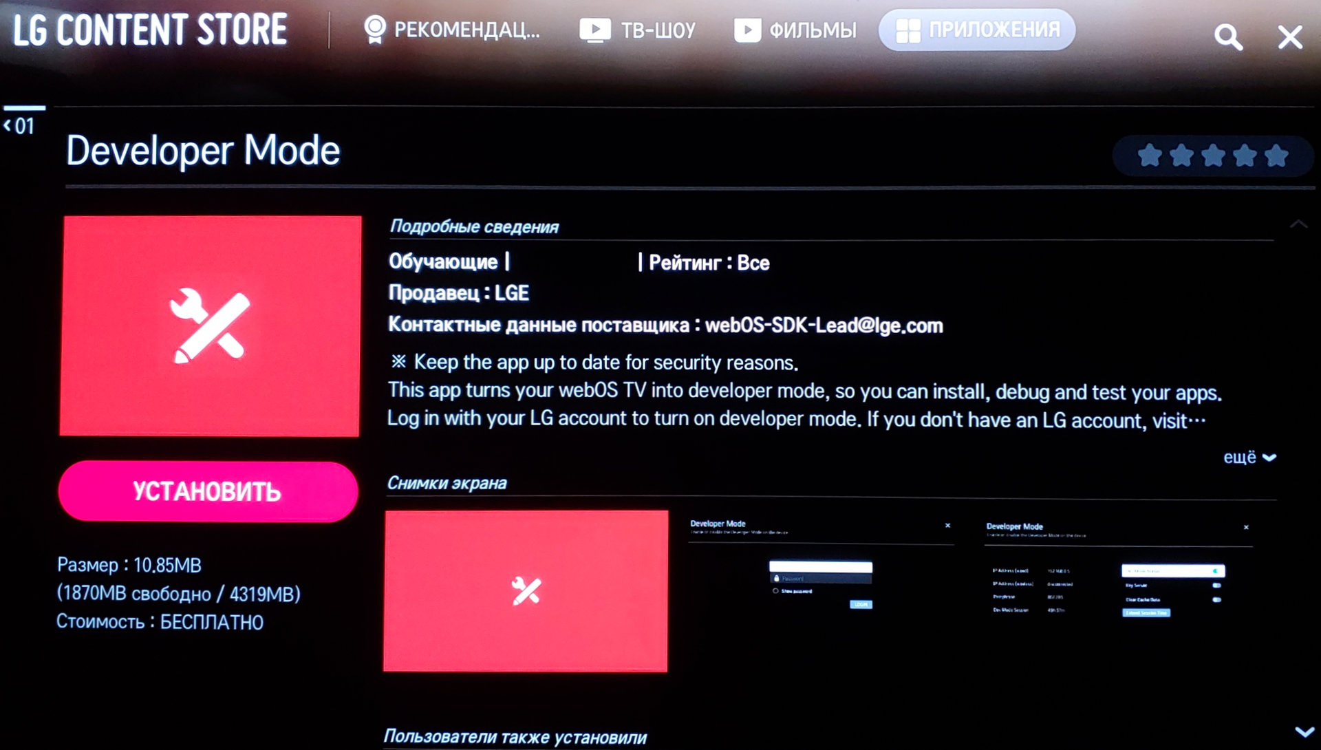 - Установите на телевизор приложение "Developer Mode" из встроенного магазина приложений Apps.