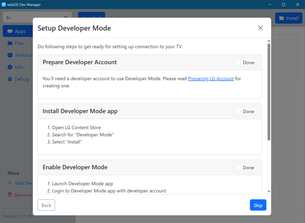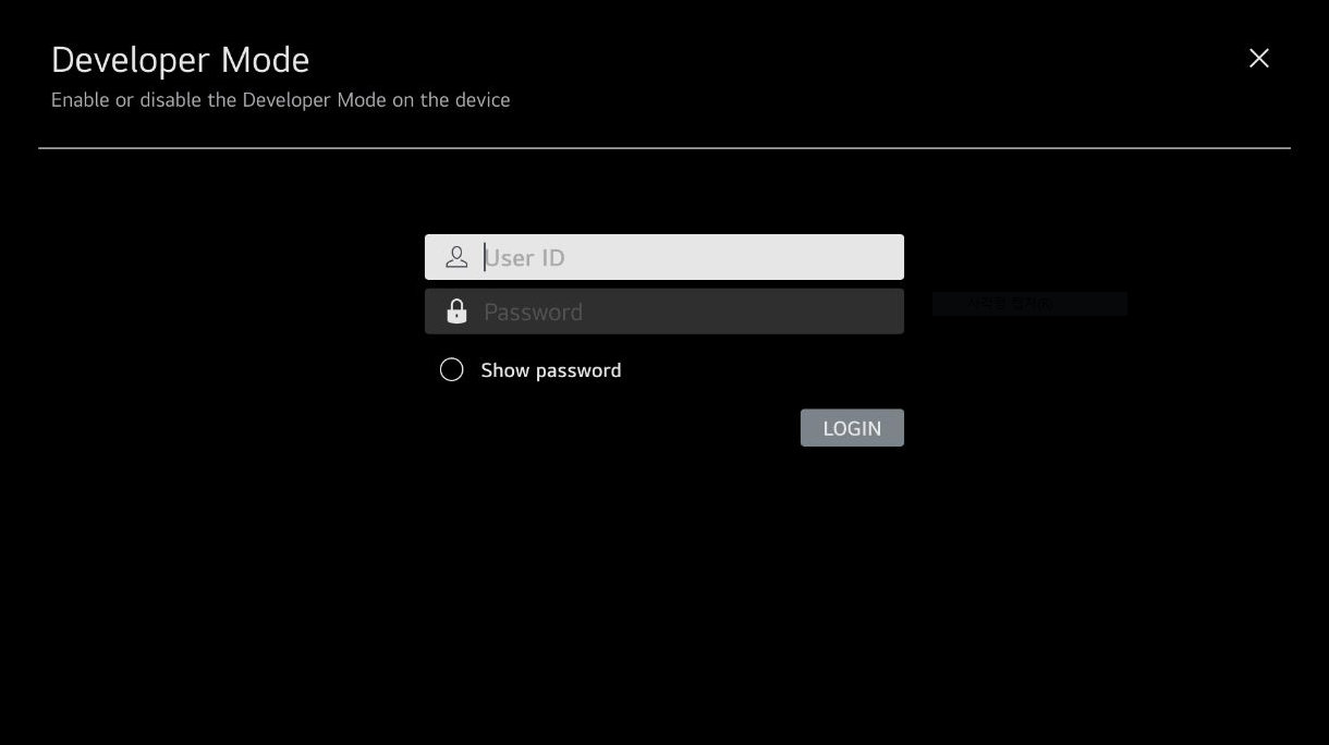 - Зарегистрируйтесь на сайте LG developer, затем авторизуйтесь под своими учетными данными в приложении "Developer Mode".