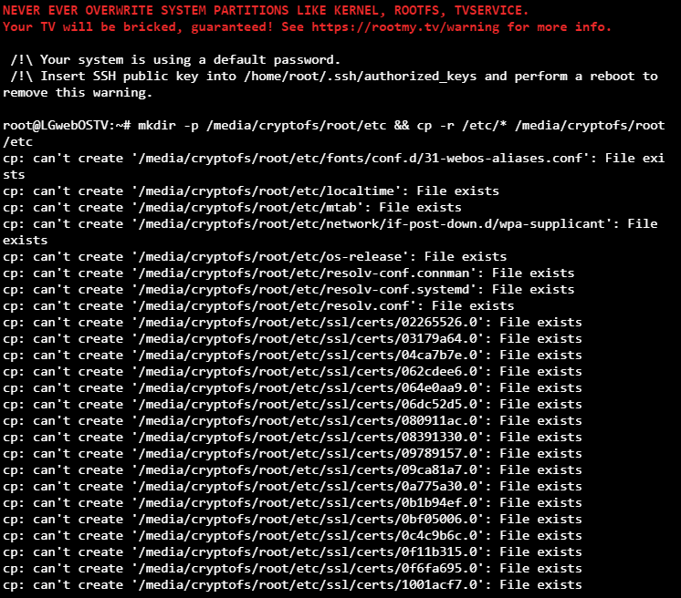 root@LGwebOSTV:~# mkdir -p /media/cryptofs/root/etc && cp -r /etc/* /media/cryptofs/root